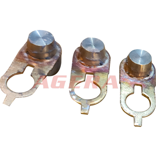 此产品为黄铜导电嘴钎焊产品,采用安嘉自动化中频直流逆变点焊机焊接,下电极做好焊接夹具,一次可以装夹多个焊接产品,IGBT控制系统将电源频率升至1000HZ,时间ms级控制,次级直流输出,阻抗小,热量集中,焊接强度高,变形小,效率高,顶推试验达到客户使用要求。以下是焊接此产品的焊机,要了解焊机详情介绍,请点击以下产品图片。