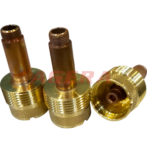 此产品为激光焊嘴钎焊产品,采用安嘉自动化中频直流逆变点焊机焊接,下电极做好焊接夹具,一次可以装夹多个焊接产品,IGBT控制系统将电源频率升至1000HZ,时间ms级控制,次级直流输出,阻抗小,热量集中,焊接强度高,变形小,效率高,顶推试验达到客户使用要求。