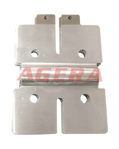 此焊接产品为铝覆镍高分子扩散焊的产品,采用安嘉铝箔软连接高分子扩散焊机焊接,此设备采用C型整体箱式结构,刚性强、散热好,焊接变形?。簧舷碌缂腥芪⒌髯爸?,可精准校平平行度,保证焊接精度和平整度,设备自带风冷功能,高效节能,可24小时连接工作等特点。