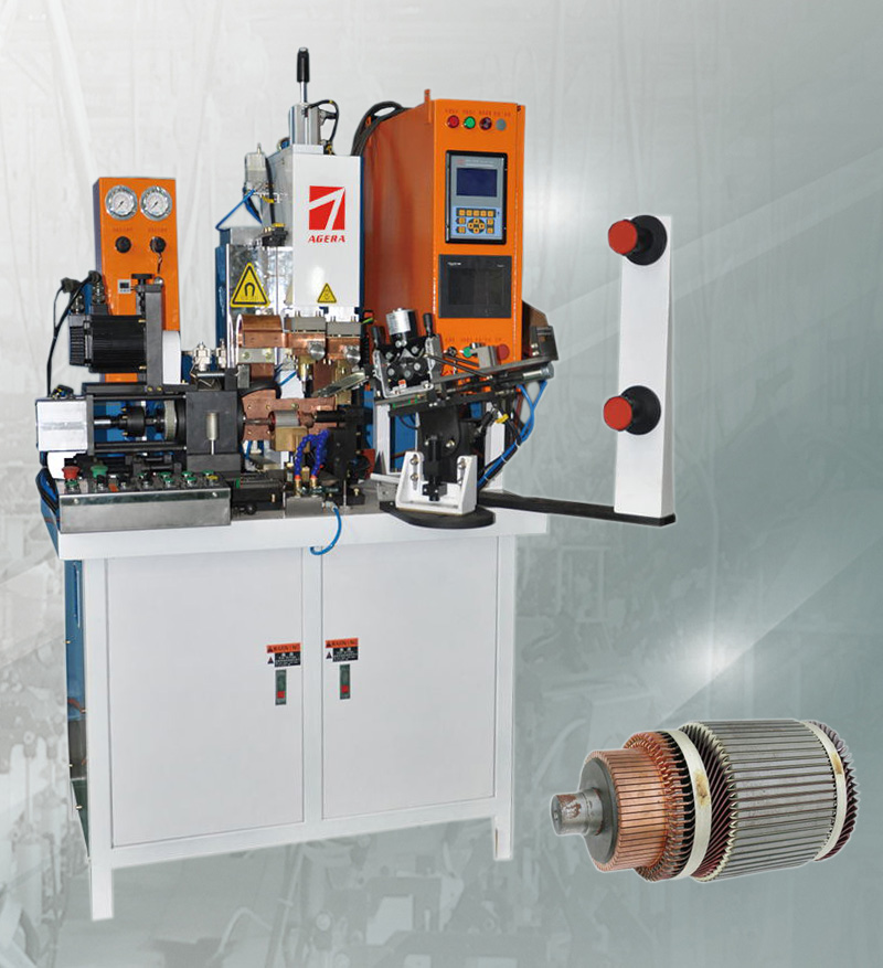 7、一次性实现双丝之间、铜线和换向器线槽之间的钎焊联接,不需要氩焊预先点焊且焊接稳固;焊透率高,热影响小不伤绝缘漆;