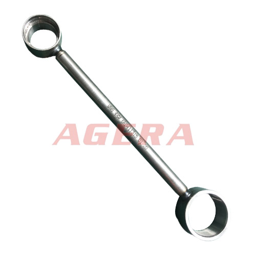此焊接产品为汽车稳定连杆环凸焊产品,采用安嘉汽车稳定连杆全自动焊接工作站,由两个振盘自动上圆环,长杆由料仓自动落料,焊接采用两套电源,连杆双头同时焊接,配以机械手自动取放等。实现了1人多机管理,智能调节夹具,自动焊接,自动车削和检测,效率高,易操作,成品率高等特点。